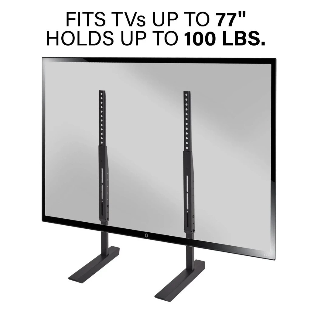• Solid, tip-resistant, steel design supports TVs up to 77″ weighing up to 100 lbs