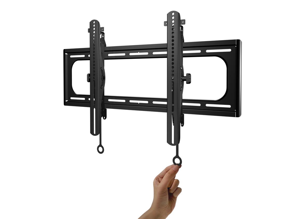The SANUS BLACK SERIES CILT1-B1 tilting mount gives you the best view from the floor or couch. Fingertip tilt allows for easy TV adjustments, and mount tilts TV back for easy cable access. TV can slide from side-to-side for perfect positioning on the wall, and safety tab provides a safe and easy connection you can hear. Product Features Conceal exposed hardware with decorative coverEasily adjust your TV without toolsHardware includedHeavy-gauge steel constructionLeveling adjustments allow TV to be perfectly positioned after hangingQuick-release mechanism allows dismounting for servicing of filters and bulbs without realigning and refocusingTilt your TV for perfect viewing from the couch or floor Specifications: Product Width: 30.00″ / 76.20cmProduct Height: 17.53″ / 44.53cmProduct Depth: 2.18″ / 5.54cmProduct Weight: 10.50lbs / 4.70kgPackage Width: 32.68″ / 83.01cmPackage Height: 3.03″ / 7.70cmPackage Depth: 10.79″ / 27.41cmPackage Weight: 12.3lbs / 5.60kgTV Size Range: 37″ – 95″Maximum TV Weight: 180lbs / 81.65kgTilt: 7° / -10°Supported VESA Patterns Min: VESA 200 x 200 Max: VESA 690 x 415
