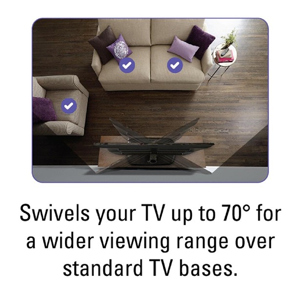 Get the best view of your TV with the multi-adjustable Sanus FTVS1-B2 TV stand. Universal supportHave you lost your TV’s stand in a home move? Or perhaps you just need something with adjustable swivel for a better viewing angle? Either way, the Sanus VuePoint FTVS1-B2 makes the ideal replacement or upgrade. Swivel to adjustThanks to 70 degrees of left to right swivel, it’s easy to get the perfect viewing angle with this universal stand. What’s more, the wide and deep base means the TV remains stable, even when fully swivelled. There is also a convenient height adjustment of 20cm. Suits nearly all 32 – 65 inch TVsWith VESA fixings from 75 x 75 through to 600 x 400, this flexible solution supports a huge range of TVs. Ideal for screens from 32” to 65” it’s highly universal and UL safety tested for TVs up to 27kg in weight. Sanus qualityAs one of the leading stand and bracket manufacturers, you can be assured of Sanus’s quality. The stand is substantially built and designed to hold your TV securely for years to come. Stand your TV in style, with the Sanus FTVS1-B2!