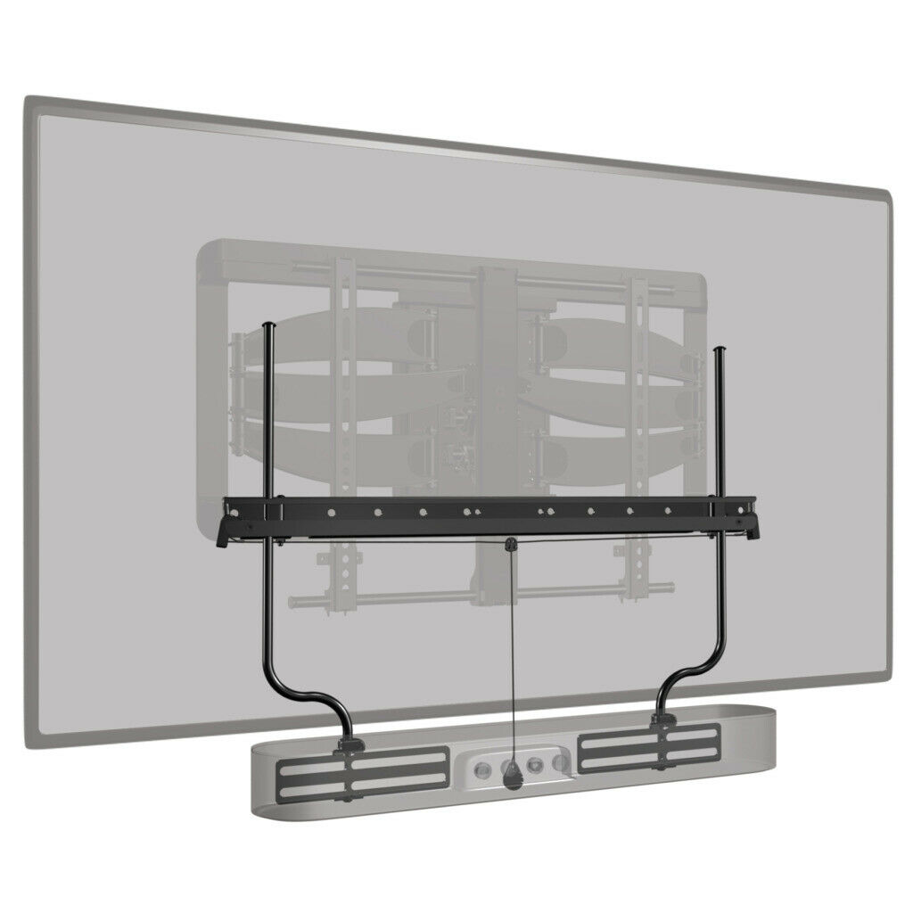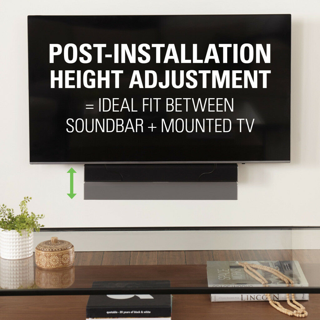 The SANUS SASB1 soundbar mount seamlessly integrates your soundbar with your mounted TV. Featuring broad compatibility, the soundbar mount attaches to the back or bottom of soundbars and works with most soundbars up to 20 lbs. Post-install height adjustment creates an ideal fit between the soundbar and mounted TV. The included depth-adjustability allows the soundbar to be positioned flush with the bottom of the TV for a clean look and helps eliminate audio interference from upward-firing speakers. Compatible with SANUS TV mounts and other UL listed mounts, the SANUS soundbar mount works with a large range of TV sizes and features broad VESA compatibility. When used with a full-motion TV mount, the soundbar mount allows your speaker to move with the TV for an optimal listening experience. Installation is a brief, 15-minute process that requires only a screwdriver, and all necessary hardware is included in the box. Product Features Seamlessly integrates soundbar with mounted TVAttaches to back or bottom of soundbar for compatibility with most speakers up to 20 lbs.Post-install height adjustment for ideal fit between soundbar and mounted TVDepth adjustability allows perfect soundbar positioning for optimal audio performanceWhen used with a full-motion TV mount, soundbar moves with TV screenRecommended for TVs 32” to 90” and features broad VESA compatibilityUniversal compatibility with SANUS and other UL listed TV mountsEasy 3-step install with all hardware included and no drilling required Take A Look At These Specs Product Brand: SANUSModel Code: SASB1UPC Code: 793795531872 – BlackProduct Width: 25.00″ / 63.50cmProduct Depth: 0.00″ – 3.30″ / 0.00cm – 8.38cmTV Size Range: 32″ – 90″ / 81.28cm – 228.60cmMaximum TV Weight: 20lbs / 9.07kg