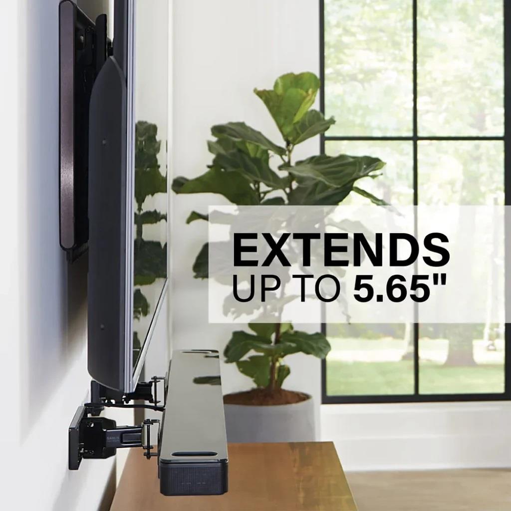 Universal Extendable Soundbar Wall Mount  The Universal Extendable Soundbar Mount is the perfect solution for anyone looking to achieve a sleek, modern look for their home entertainment system. Our mount is designed to optimize audio performance for Dolby Atmos soundbars with a max depth of 5.65 inches, and it can be easily mounted to drywall, wood studs, or concrete.  The mount also offers easy access to power and cable management, allowing for a neat and tidy appearance. Its slim profile creates a seamless, floating look on the wall. Best of all, installation is quick and easy, requiring just 15 minutes and three simple steps.  All the necessary hardware is included in the box, so you’ll have everything you need to get your soundbar securely mounted in no time. Try the Universal Extendable Soundbar Mount today and take your home entertainment to the next level!  Product Features  1. Features an extendable design allowing for easy depth adjustment 5.65″ for optimal audio performance for Dolby Atmos soundbars  2. Easily mount the your soundbar directly to drywall, wood studs or concrete giving you the flexibility to center below your TV  3. Easily access power and manage cables directly to the wall behind the soundbar  4. Featuring a slim profile, the SANUS soundbar wall mount stays hidden creating a completely seamless, floating look on the wall  5. In just 15-minutes and 3-steps your soundbar will be secure on the wall, all the hardware needed for installation is included in the box  Tools You Will Need For Installation  Electric Drill Hammer Level Pencil Phillips Head Screwdriver  Product Width: 7.24″ / 18.39cm Product Height: 2.72″ / 6.91cm