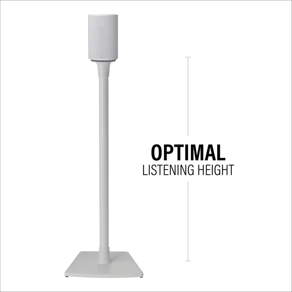 Speaker Stands For Sonos Era 100™ (Pair) These SANUS Fixed-Height Speaker Stands designed for the Sonos Era 100™ offer the optimal listening height, cable management and sleek design. These stands are sure to deliver optimal audio performance regardless of your listening needs. Constructed of durable steel that not only resists wear, but also perfectly complements the aesthetics of the Sonos Era 100™ for a sleek, seamless look. Perfect for use in any setup, be it home theater, surround sound, or ambient listening. For a cable-free look, these stands feature an oversized post that the cable can be passed through. Assembling easily in 15 minutes with a Phillips screwdriver, this sleek stand will help get you the perfect sound for your space. What’s in the box? Tube (2), Top Collar (2), Bottom Collar (2), Base (2), Base Assembly Screw (2), Lock Washer (2), Rubber Pad (8), Carpet Spike (8), Jam Nut (8), Top Bracket (2), Top Bracket Screw (2), Speaker Bracket (2), Speaker Screw (2), Securement Screw (2) Product Features: Seamlessly blends with Sonos Era 100™ wireless speakerOptimal Listening Height (34.40 in/ 87.40 cm)Integrated through post cable management for a sleek lookIncludes proper hardware to secure your speaker to the standIncludes rubber feet & height adjustable carpet spikes for any floorPerfect for any setup: Home theater, stereo pairing, or ambient listeningSturdy, oversized base helps prevent tip in any direction Tools You Will Need For Installation: Phillips Head Screwdriver Product Width: 12.70″ / 32.26cmProduct Height: 34.40″ / 87.38cm